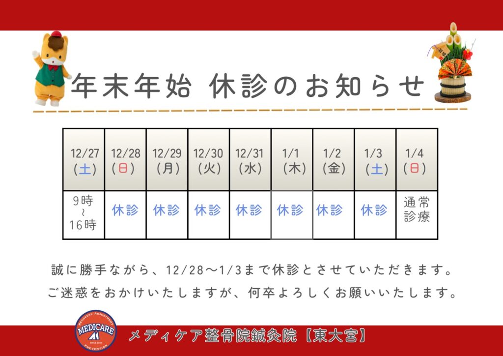 12/28(日)~1/3(土)まで休診とさせていただきます。